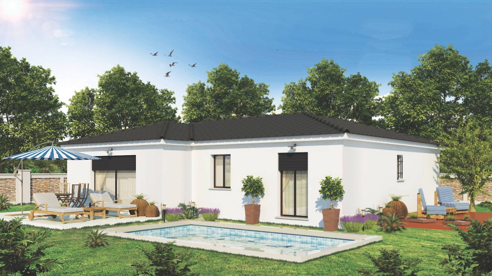 - Contemporaine : Aux lignes très sobres, voire cubiques, avec ses couleurs claires, alliées à une toiture 4 pentes aux tuiles anthracite ou un toit plat et des débords en béton quand cela est autorisé. Ses larges ouvertures la rende très lumineuse.