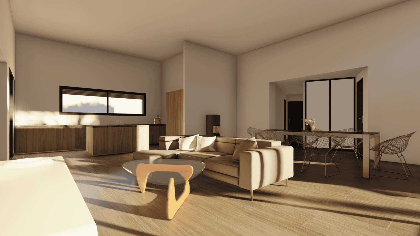 Pour créer une sensation de volume dans un espace chaleureux et convivial il est possible d'augmenter la hauteur sous plafond de la pièce .