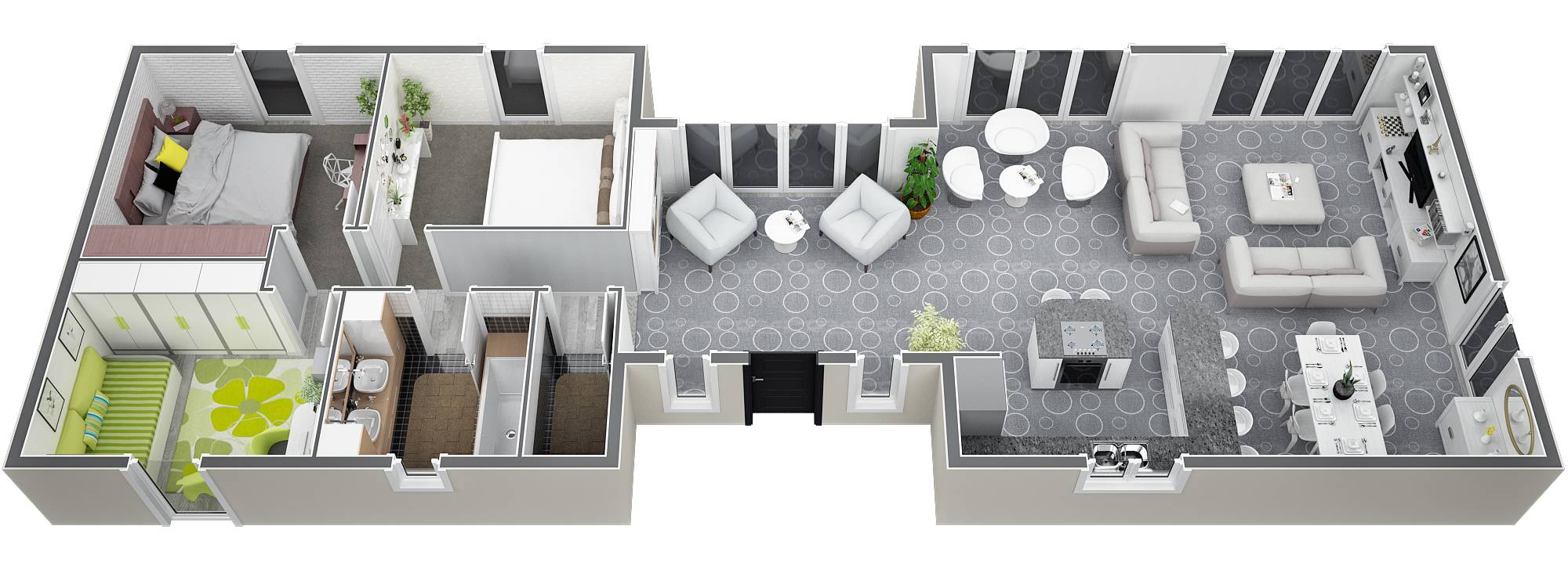 Modèle de plans de villa de construction traditionnelle de plein pied de 100M2